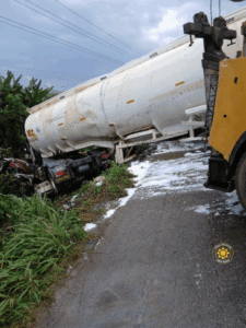 The crash involved a MAN Diesel tanker with registration number GN 4550-19 and a Sprinter bus numbered AW 732-13, which was transporting eight passengers at the time of the incident.