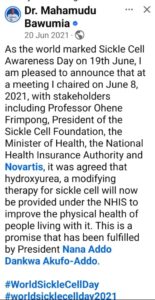 Records show that in 2019, then Vice President Bawumia first announced Ghana’s adoption of hydroxyurea, a globally acclaimed drug for sickle cell. By July 1, 2022, NHIS officially covered hydroxyurea and other treatments, making Ghana the first African country to roll out the drug under national health insurance.