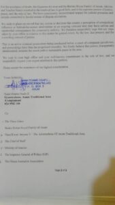 The petition highlights growing anxiety within the Anum community over statements allegedly circulating publicly, attributed to some of the accused persons, including Nana Owusu Ntow and Samuel Kwasi Annor.