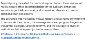 To support these reforms, he appealed for practical interventions, including secure office accommodation for the Judiciary, improved security for judicial officers, and expedited clearance to recruit additional staff and technical experts.