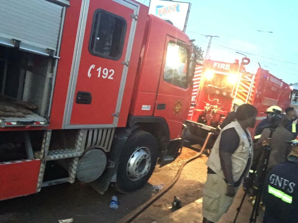 The Anyaa, National Headquarters, Legon, and Madina Fire Stations responded promptly after receiving a distress call at 3:08 p.m. The first fire appliance arrived at 3:29 p.m., with firefighting operations continuing into the evening.