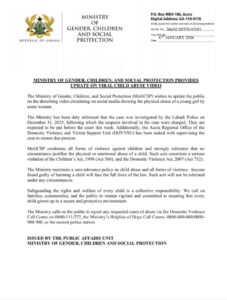 The Ministry of Gender, Children and Social Protection (MoGCSP) has condemned a disturbing video circulating on social media showing the physical abuse of a young girl and confirmed that police investigations into the incident have been concluded.
