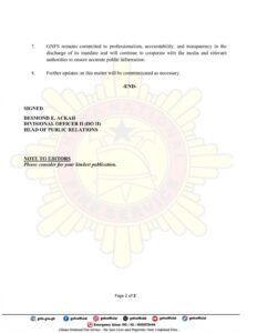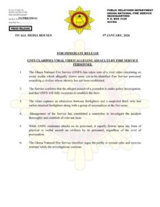 GNFS reaffirmed its commitment to professionalism, accountability, and transparency in the execution of its mandate, adding that it will continue to cooperate with the media and relevant authorities to ensure the dissemination of accurate information to the public.