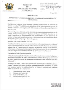 The announcement came after the Ministry of Lands and Natural Resources received the report of the Tender Committee from the Minerals Commission on Tuesday, April 7, 2026.