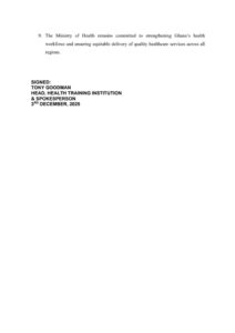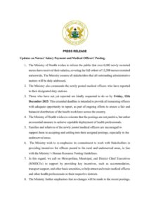 Addressing concerns about postings, the Ministry clarified that assignments are not meant to be “punitive” but are instead guided by the national goal of ensuring fair, balanced, and accessible healthcare services for all Ghanaians.