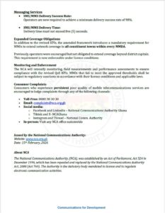The National Communications Authority (NCA) has introduced new quality targets for mobile network operators, including a strict requirement that SMS and MMS delivery time must not exceed five seconds.