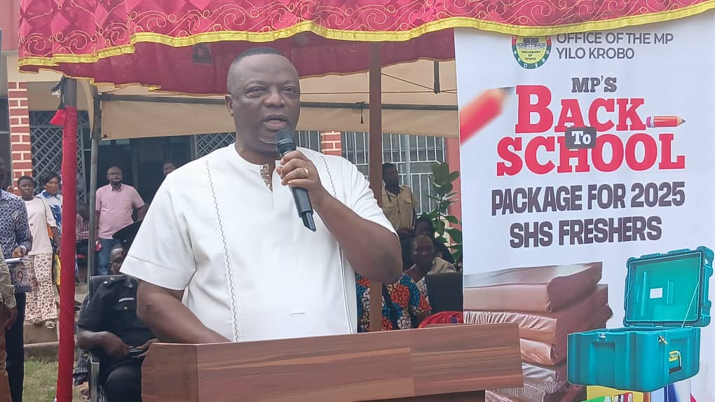 The Member of Parliament for Yilo Krobo, Hon. Albert Nyakotey, has distributed over 250 chop-boxes, student mattresses, exercise books, and other essential educational materials to students who successfully passed their Basic Education Certificate Examination (BECE).